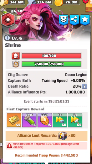 - Каждая зона даёт альянсу усиление (например: монеты, еда, железо, скорость).